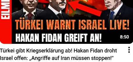 Netanjahu und Trump haben gemeinsam den Iran überfallen, mit Billigung von Friedrich Merz. Der Herr hat dabei sie mit Blindheit geschlagen. Alles ging schief und deshalb konnte Hakan Fidan noch eine Rede halten, wobei wir wiederum davon aus gehen können , das sie mit Erdogan abgestimmt ist. "Welten Denker" hat zum Thema am 16.03 dieses Video ins Netz gestellt :