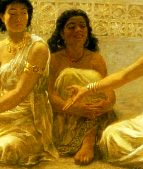 Yerusəlimdə əsir götürülən qullar tamaşaçı baxımından saat əqrəbi istiqamətində hərəkət edən növbədə oturublar. Sonuncu sırada qara dərili Afro-Afrika qadındır. O, hələ də bakirə ola bilər və növbəti iki və ya üç saat ərzində satılacağını və sonra çiçəklənməsini gözləməlidir.